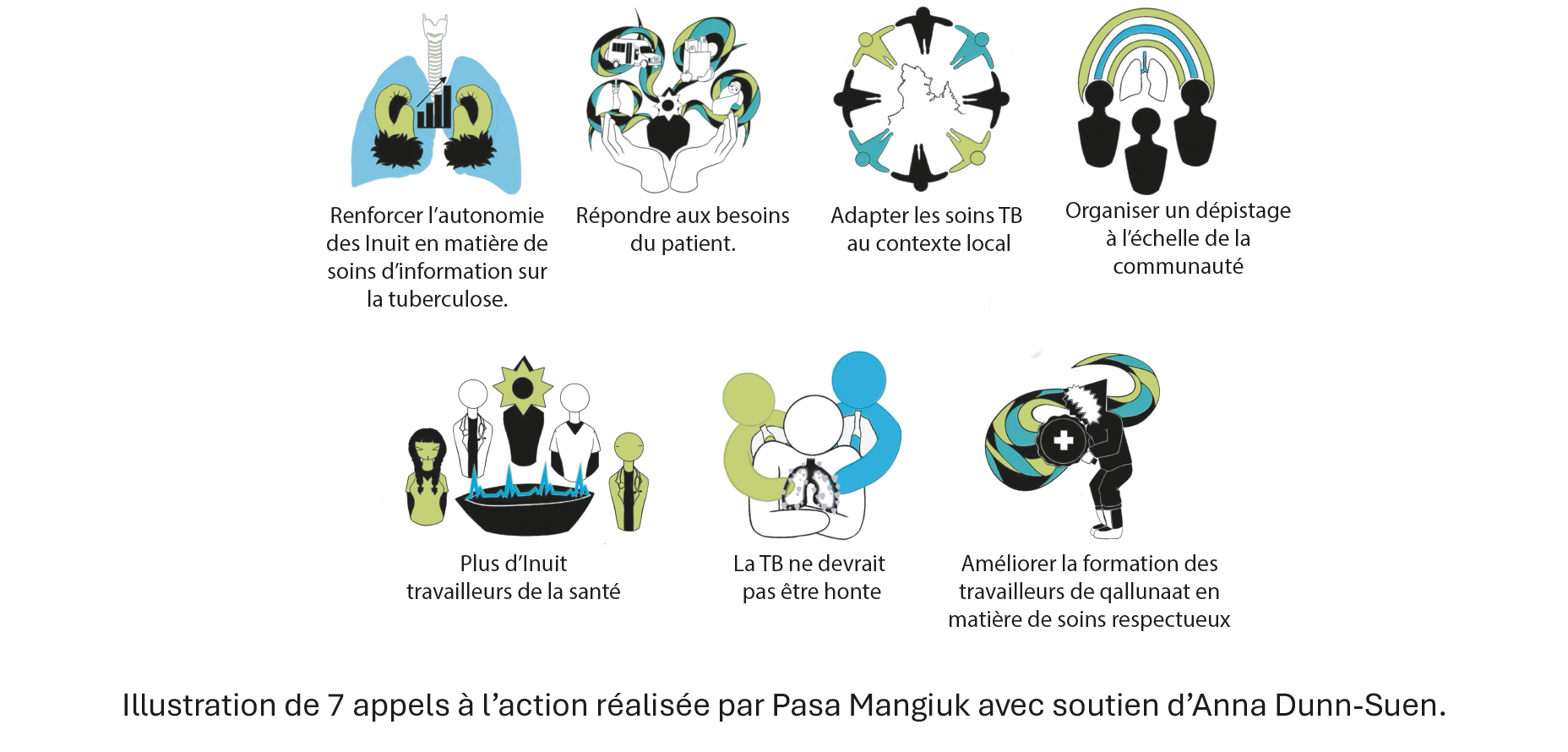Les chercheurs, en s'appuyant sur l'expertise des participants inuit (Nunavimmiut), ont formulé sept appels à l'action concrets pour transformer les soins liés à la tuberculose au Nunavik. Ces recommandations visent à passer d'un modèle centré sur le programme à un modèle centré sur la personne et dirigé par les Inuit.